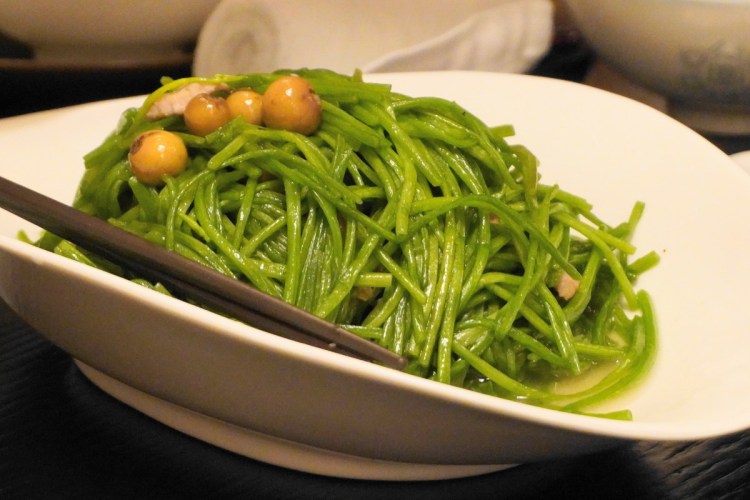 第一道樹子水蓮就讓我非常的驚豔,本來非常討厭吃水蓮那種生澀口味以外,還有很老的纖維讓人很難咀嚼口感;但這裡的水蓮卻快要跟地瓜葉一樣嫩了,加上破布子淡淡鹹香真的滿不錯的!
