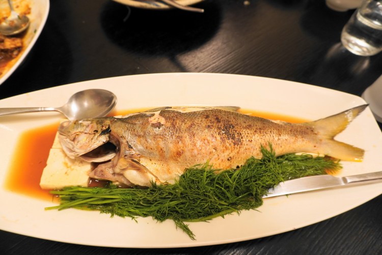這蒸烤午仔魚非常大隻, 午仔本身油脂非常豐富,一般都是用煎的或烤的來帶出香氣 ,讓人意外的是蒸烤得還不錯,竟然可以保有鮮度原味但又不油膩。