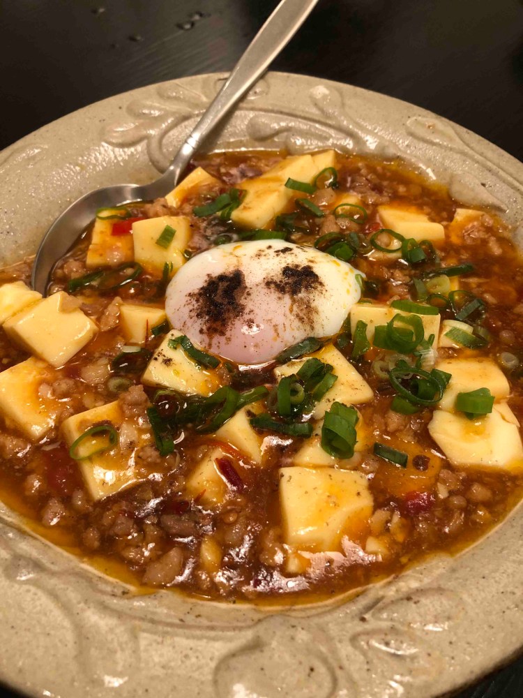 覺得他的麻婆豆腐創意是真的蠻好的當你沒有貨到但之前半熟蛋之前旁邊的味道是比較偏鹹辣一點但如果將蛋黃一起獲鹿就是另外一種味道多了一些層次
